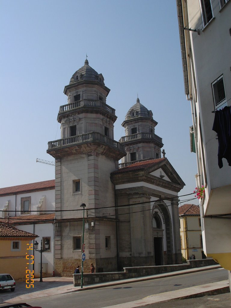 C/Enrique Alau, 2, Candás 985870581Conserva una antigua cabecera, sita bajo el camarín del Cristo, detrás del retablo barroco; dentro de esa cabecera y en su muro occidental, una ventana –de arco de medio punto y rematada en chambrana (labor o adorno de piedra)– que se halla invertida respecto a la situación del templo actual; la arquivolta de esta ventana se apoya en columnas. Conserva los dos cubos de las escaleras de caracol, así como el camarín en el que se ubica –en un retablo barroco– la imagen del Cristo de Candás –muy venerado–, que es una reproducción. Monumental fachada rematada en un frontón, flanqueado por dos torres. Pórtico o cabildo abierto hacia el lado sur. Gran arco encima del altar mayor. Reconstruida tras la guerra civil. Es uno de los santuarios más populares de la región, al acoger en un camarín (pequeña capilla) barroco la imagen del Cristo de Candás.