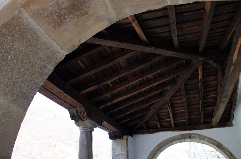 Es una construcción del románico popular con planta de nave única rematada por cabecera cuadrada y por un pórtico al que se adosa la sacristía, las fachadas oeste y sur. La nave se cubre con cubierta de madera a dos aguas y la zona del ábside con bóveda de cañón algo apuntada. El arco de triunfo que separa el ábside de la nave se apoya sobre pilar de tres fustes y capiteles decorados.