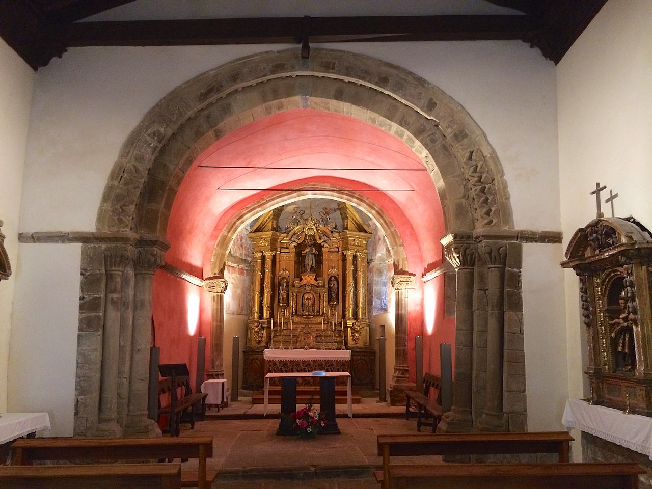 Otros elementos en el interior de la iglesia son el retablo barroco popular del ábside, y el retablo de la capilla lateral, también barroco, y en el que destaca una talla del apóstol románica. En la zona del ábside hay restos de pinturas murales.