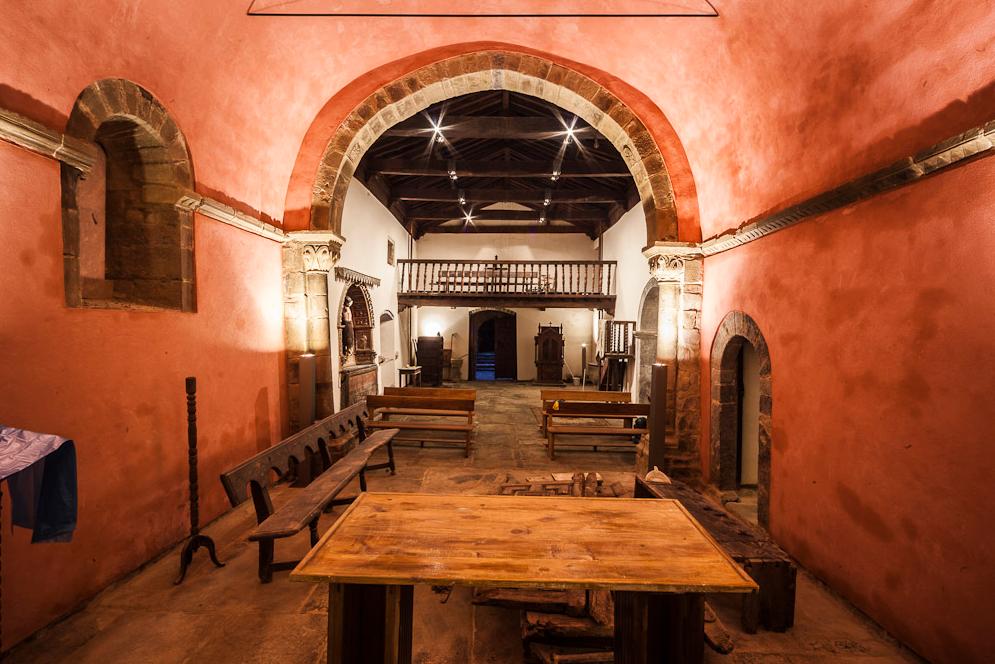 La separación de zonas viene marcada por dos arcos de triunfo, el primero que separa la nave del presbiterio es doble y se apoya sobre columnas con capiteles decorados, y el segundo, que da paso al ábside , apoya sobre pilastras y capiteles con impostas también decoradas.